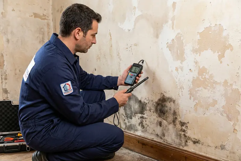 Un expert se déplace à Saint-Étienne-de-Baïgorry pour analyser l'origine de l'humidité avec des outils de mesure professionnels.